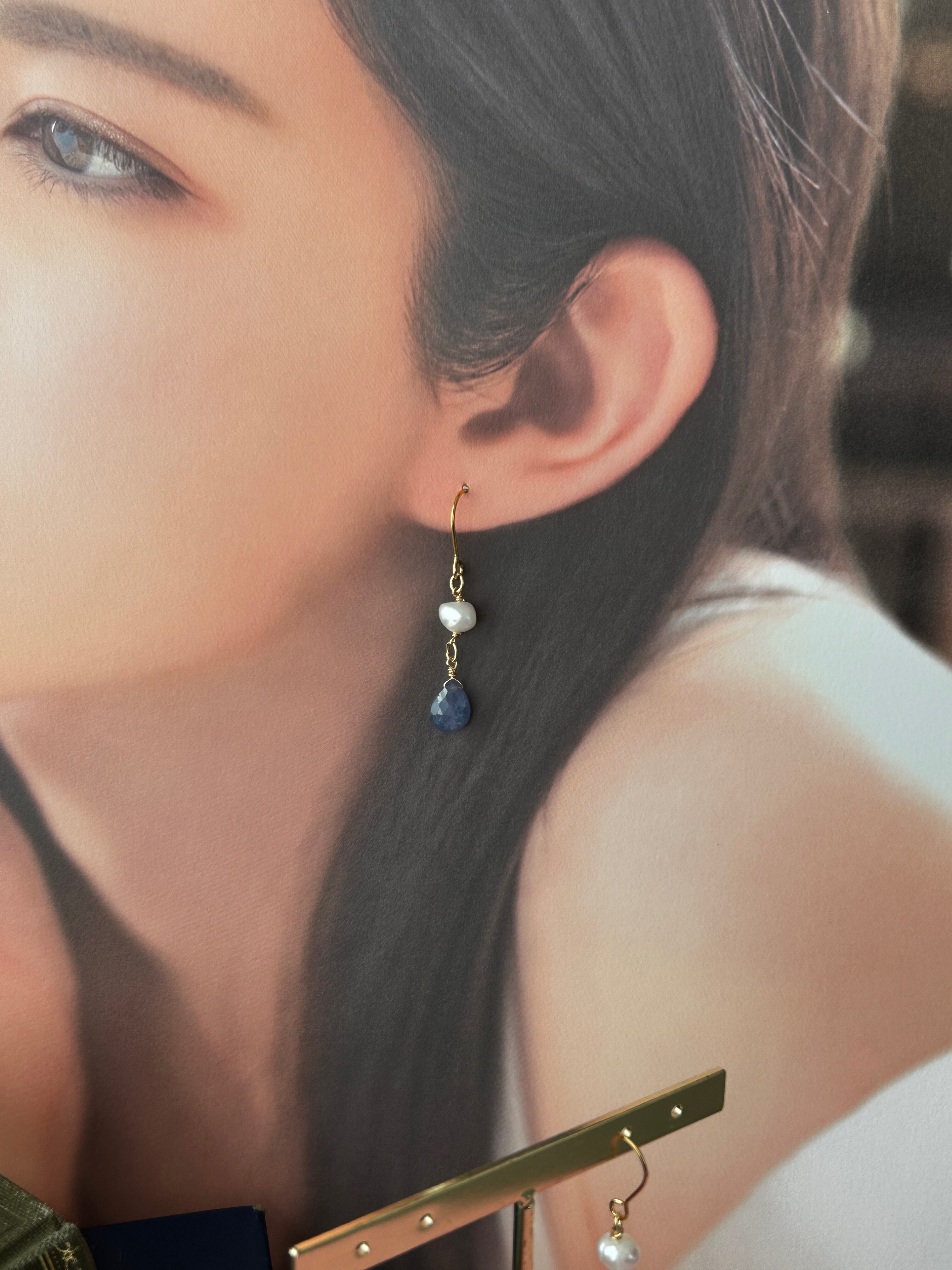 美しい雫型にカットされたタンザナイトは少し紫ががったブルーの天然石です。上品な光沢が品の良さを際立たせます。淡水真珠と合わせていますので華やかで上品なアクセサリーに仕上がっています。