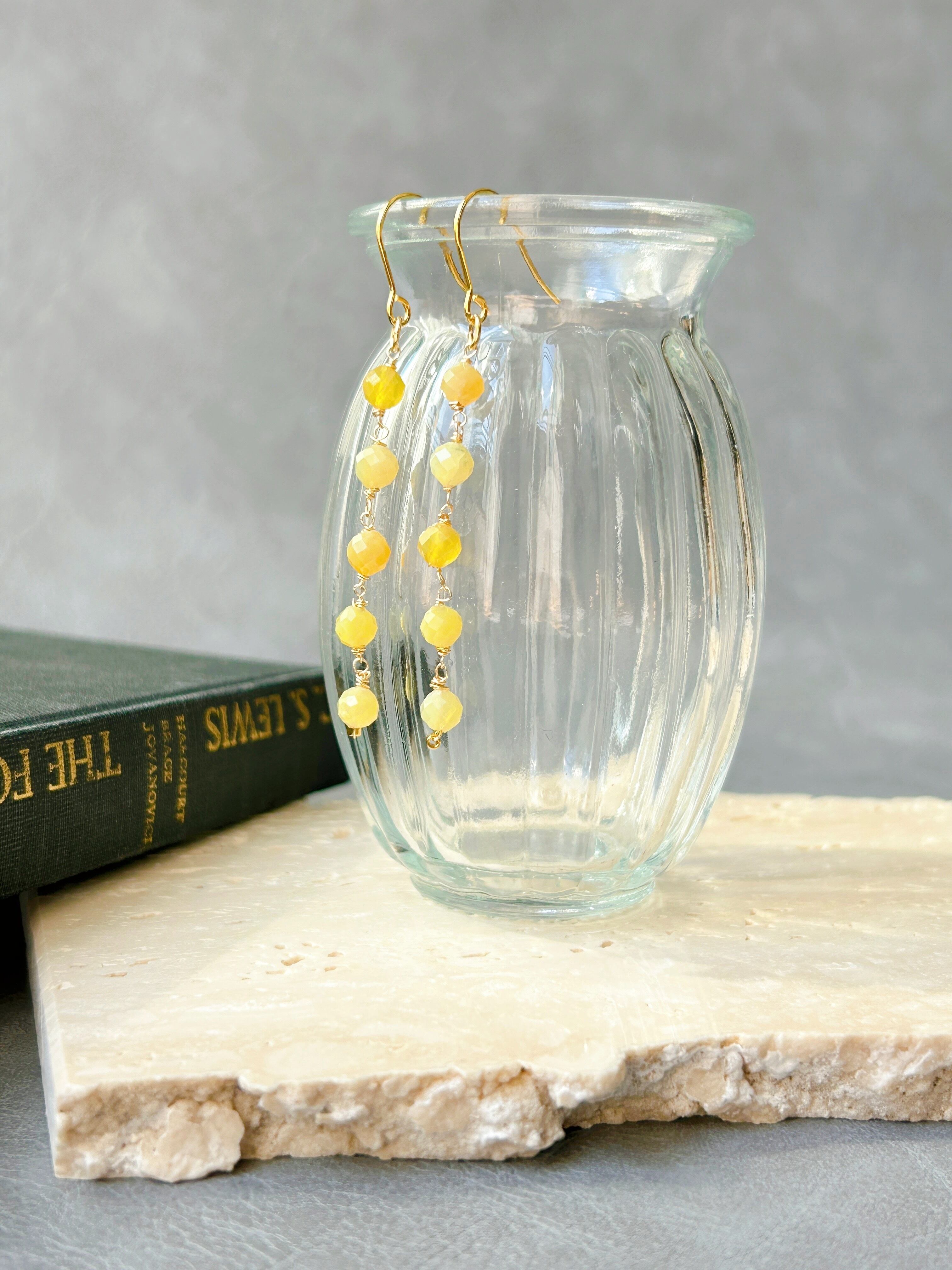 ミモザのようなイエローがかわいいイエローオパール(天然石のピアスです。